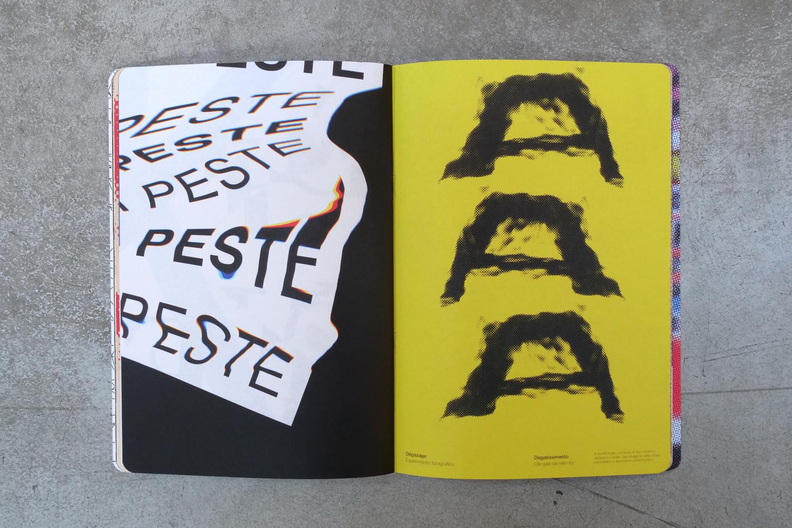 Schizzi, scansioni, lettere distorte, mani allungate, scotch, poster ridimensionati, macchie di caffè: tutto il necessario per poter raccontare per immagini il lungo processo che ha portato alla nascita degli alfabeti pestiferi realizzati.