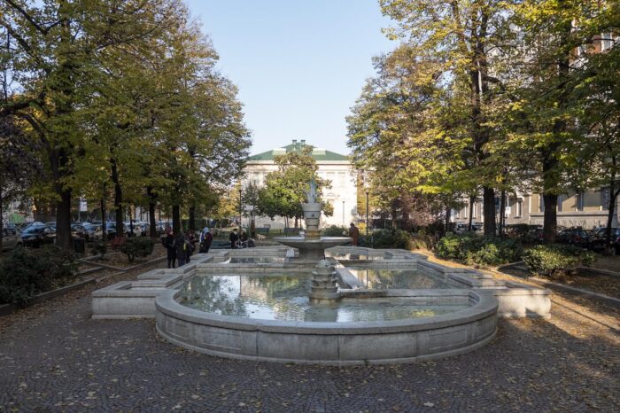 L’intervento prende forma nelle vasche della fontana di via Benedetto Marcello, collocata oggi nello spazio attiguo a quella che era la porta d’uscita (Porta Brutta) dell’antico Lazzaretto di Milano.