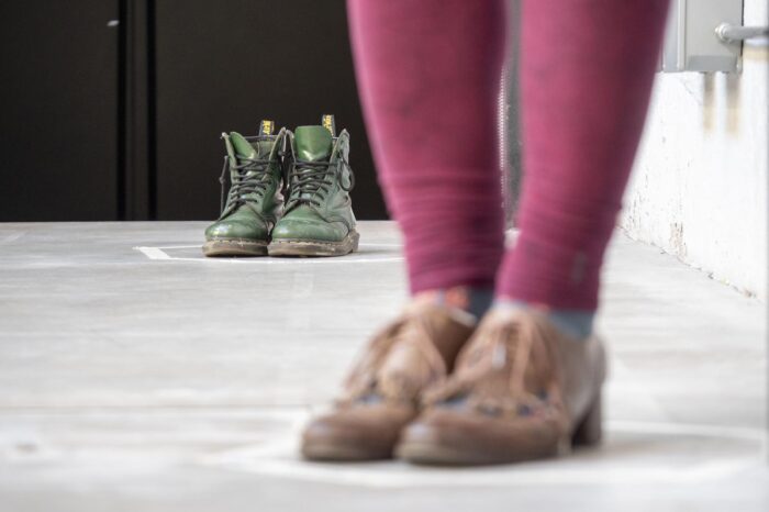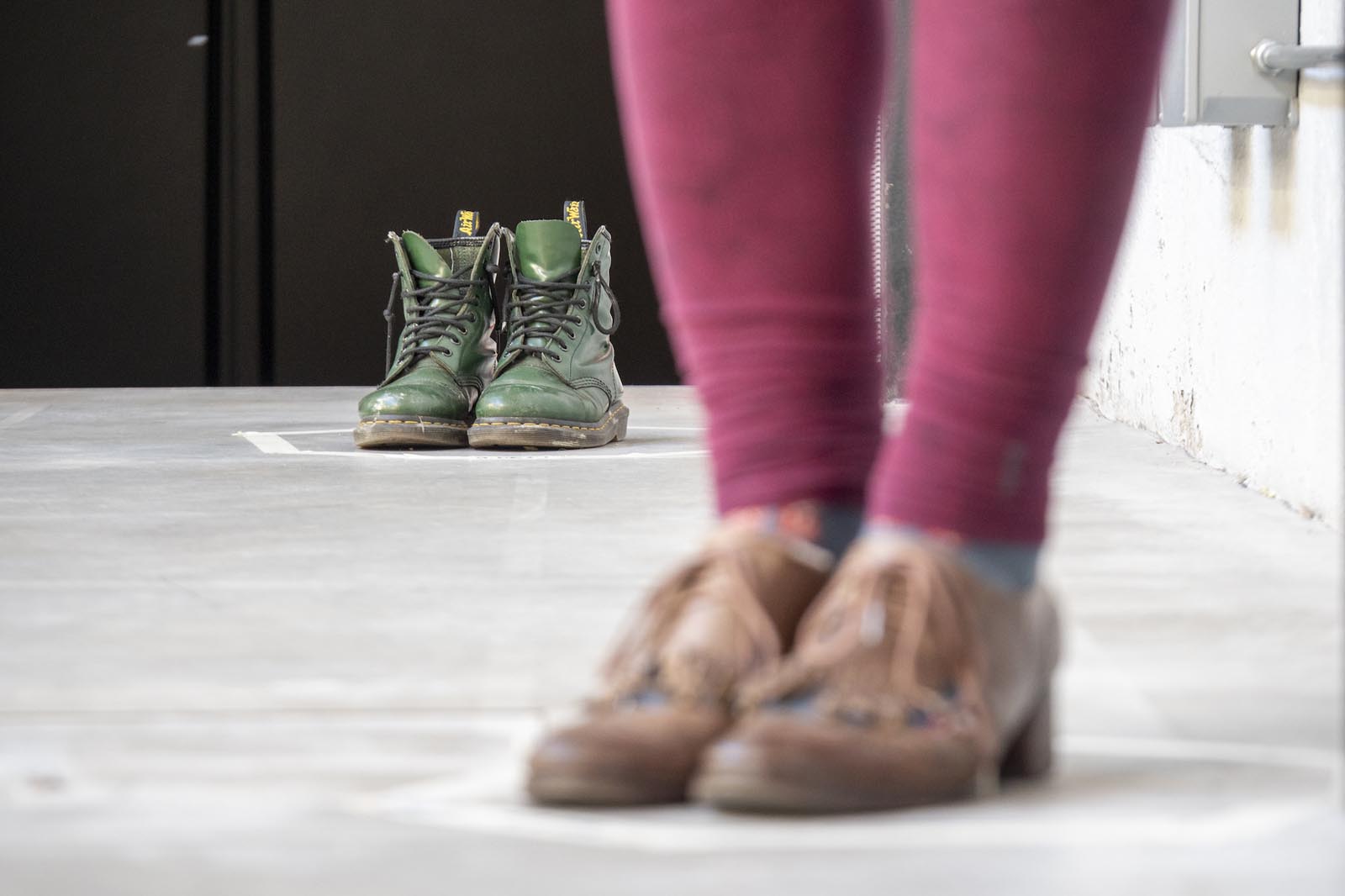 L’attrice Caroline Baglioni e il regista Michelangelo Bellani hanno condotto un laboratorio per indagare la costruzione di una particolare ‘biografia’, per comporre una partitura fisica e di memoria da agire ciascuno in una propria circo-stanza, in relazione alle scarpe, proprie o di qualcun altro.