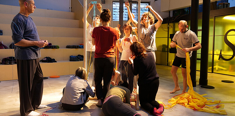 Esercizi di filatura del tempo è un percorso laboratoriale portato avanti durante l’anno negli spazi della Fondazione Il Lazzaretto. Lo scopo iniziale di questo esercizio era quello di far vivere ai partecipanti l’esperienza simbolica dell’invecchiare, in una prospettiva collettiva e comunitaria, mettendo in sinergia i metodi della Bioenergetica con un lavoro artistico ed espressivo che si è concretizzato nella realizzazione di un arazzo. Il Festival della Peste! sarà un momento per restituire al fruitore questo percorso, le memorie del gruppo e le sue trasformazioni, attraverso un video e le riflessioni dei partecipanti sull’esperienza del workshop.