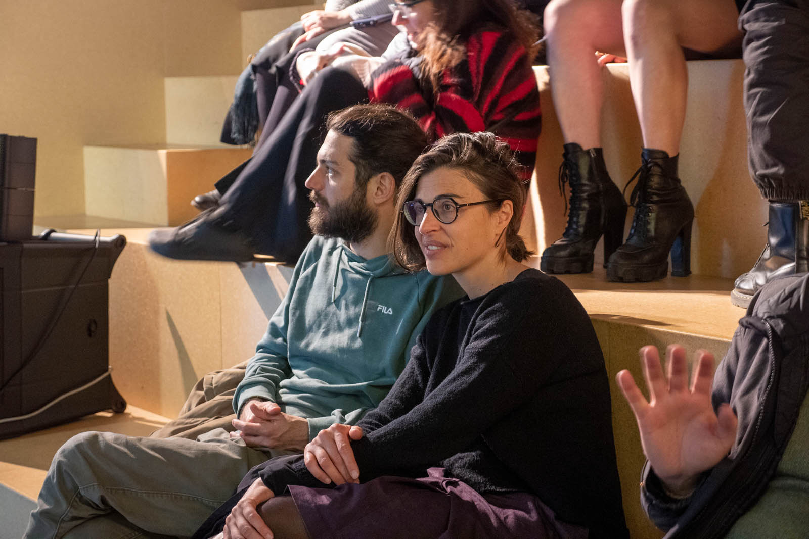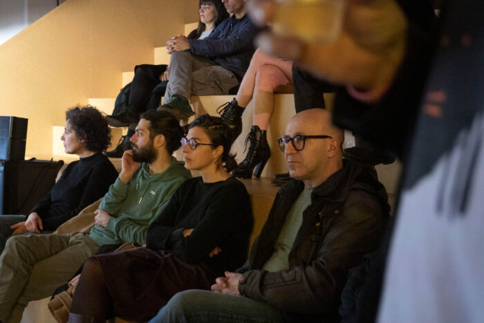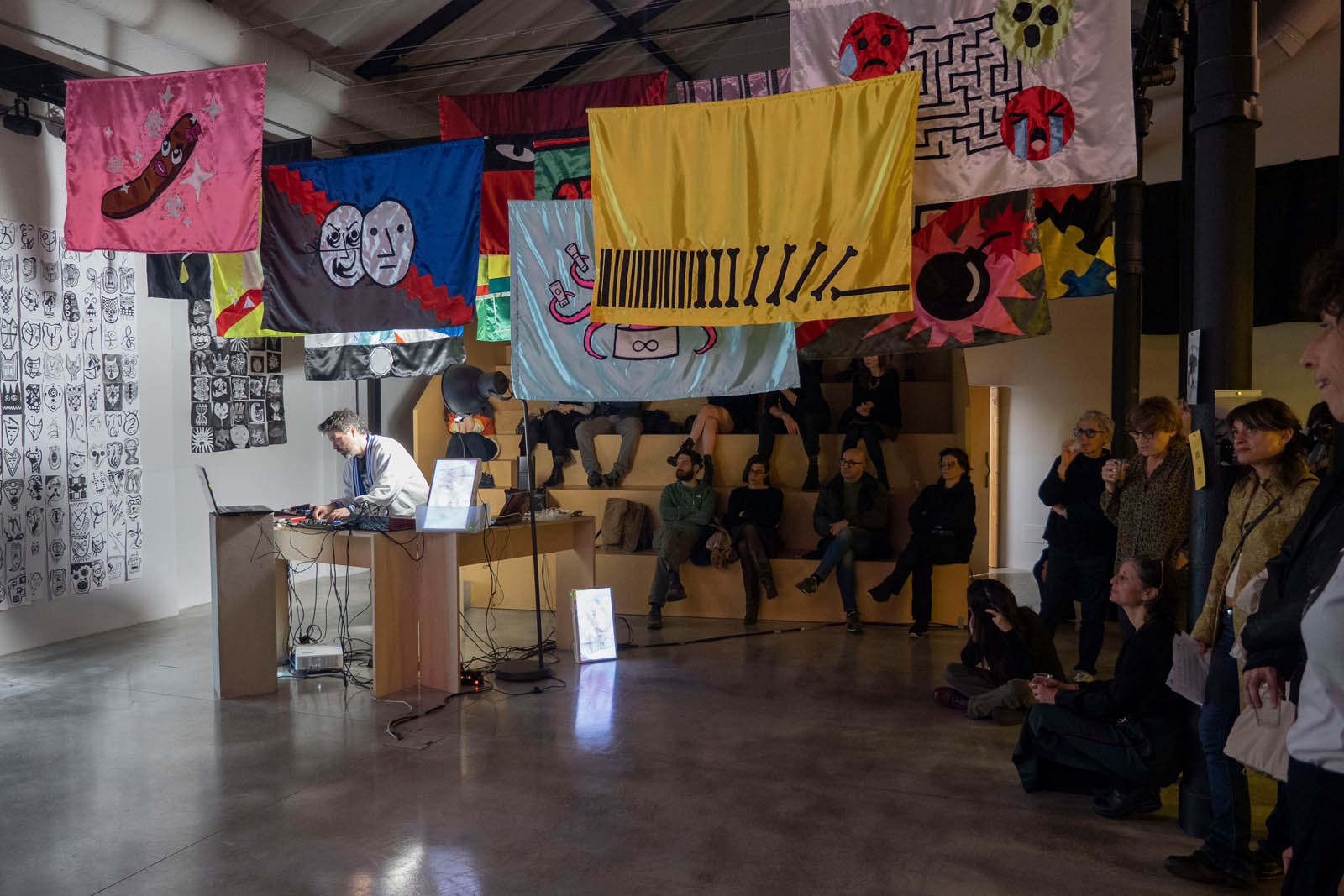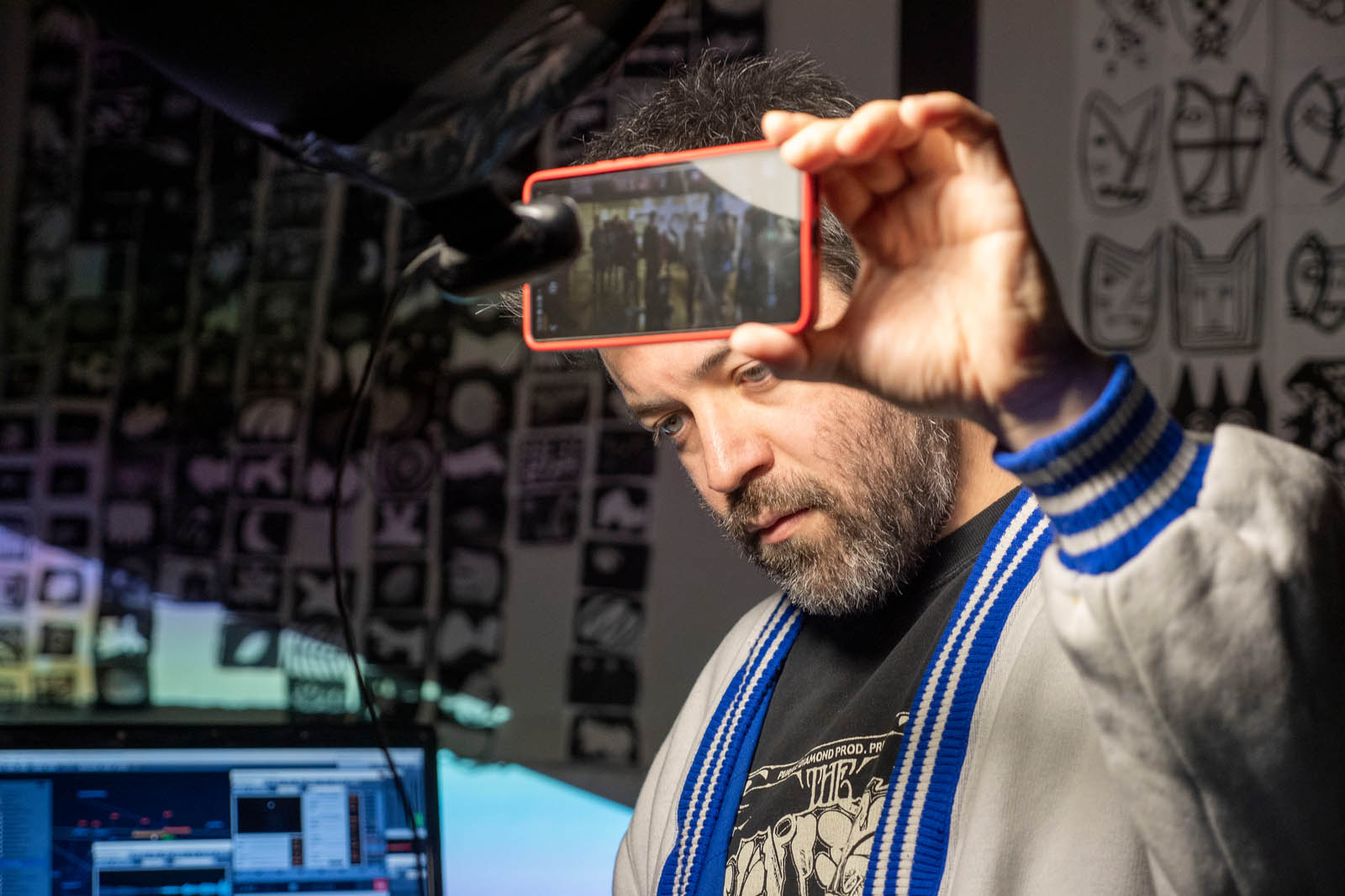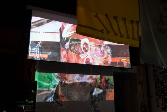 Skreen 2020 è un’azione audiovisiva, una re-visione del rapporto tra tecnologia, corpo e spazio. Marinelli spacca la magia del digitale e ne riutilizza i cocci sparsi tra stampe, modding vettoriale, schermi e camere dal vivo. La musica è spezzata, prende il flusso dell’attesa, della frenesia degli scroll, delle immagini filtrate. Ne emerge un mostro generato dalla difformità: un selfie, una maschera, nickname divisi da underscores, info-emozioni e il poligono dello schermo come oracolo delle nostre identità.