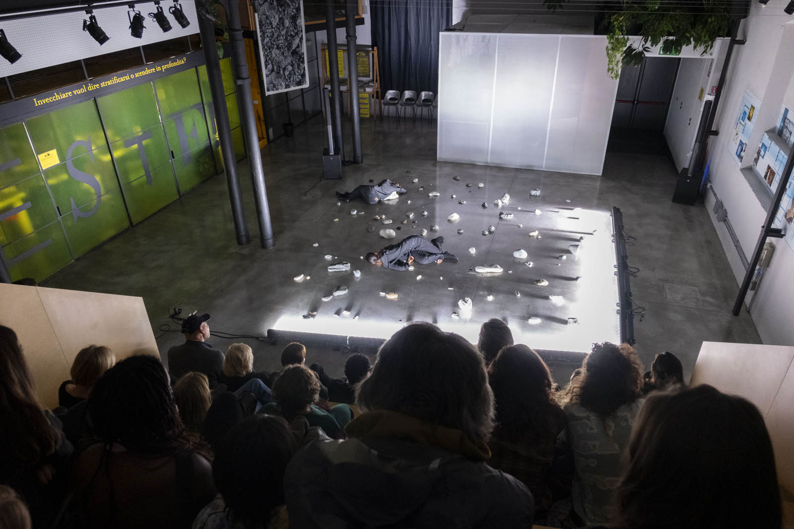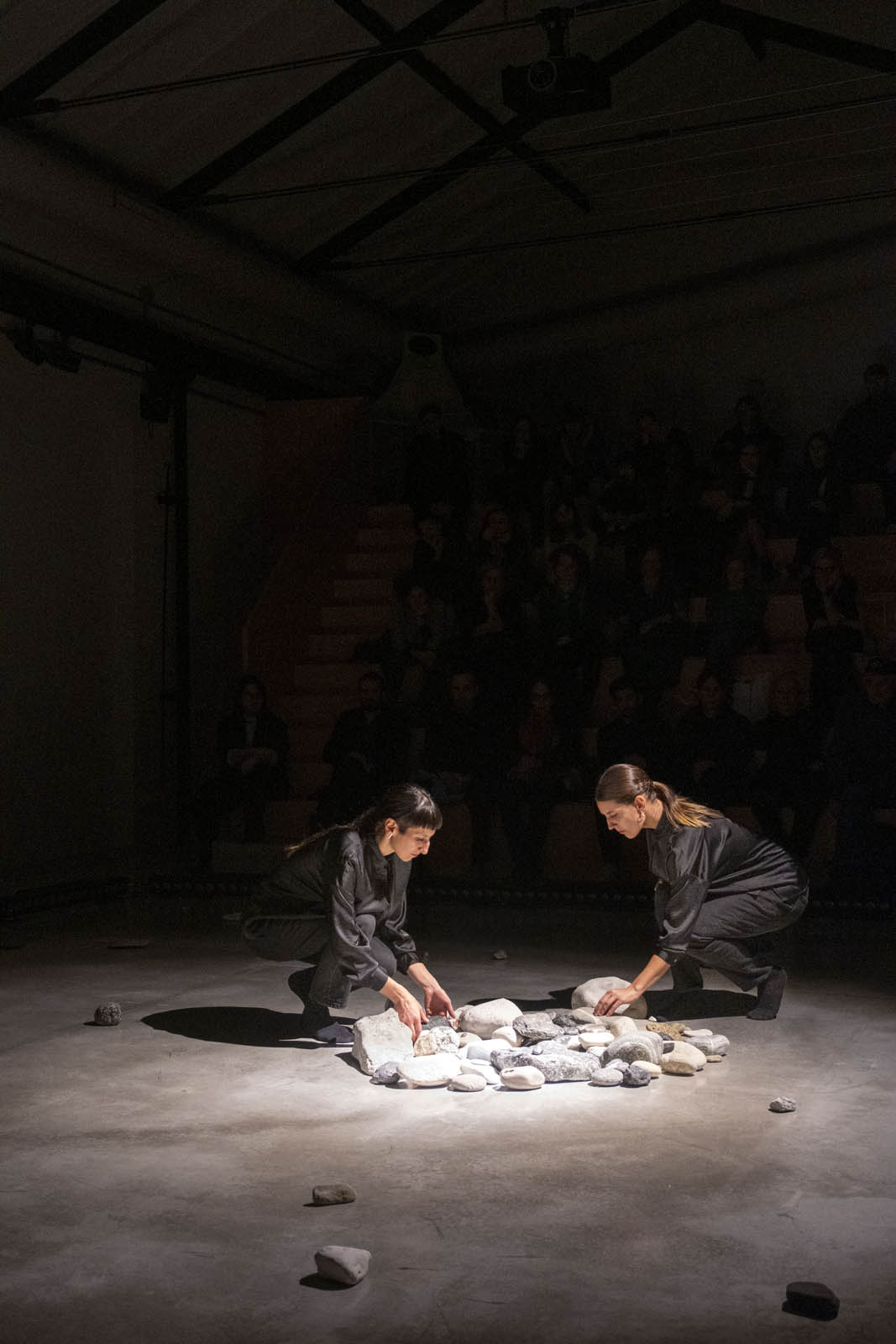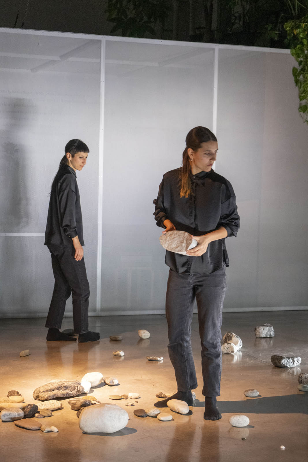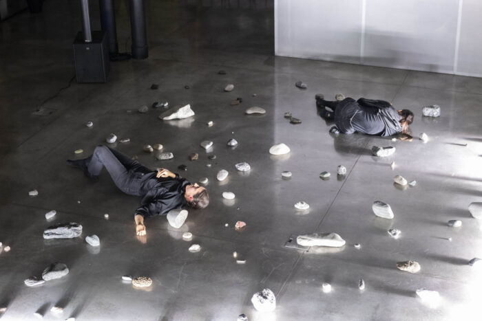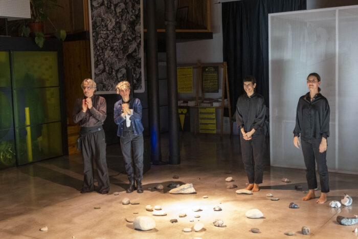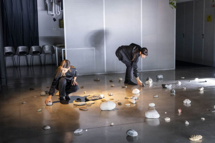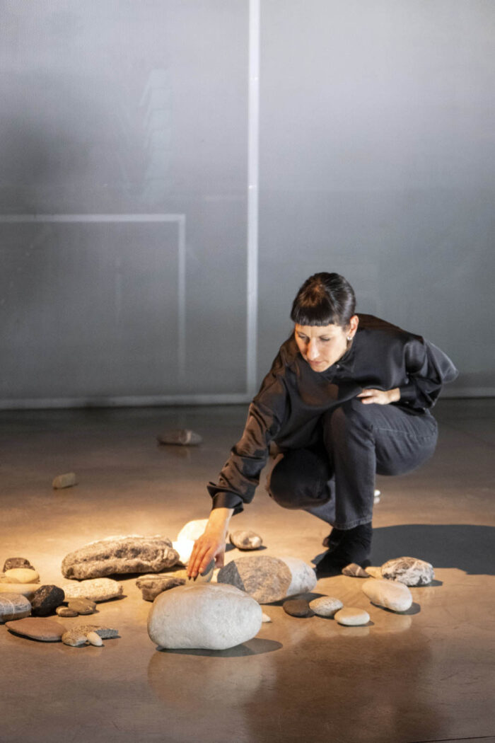 L’installazione performativa Coming to matter è una delle evoluzioni della ricerca Pleasure rocks, che esplora da molti anni forme di risignificazione del piacere nella relazione tra umano e altro dall’umano. Coming to matter é uno spazio di incontro e intra-azione della materia, tra corpi umani e minerali. Entrare in relazione con le pietre è un atto di cura: non sposto ma sono spostata, non scelgo ma sono scelto, non mi muovo ma sono mossa, in una continua riconfigurazione del gesto. La percezione del tempo cronologico muta e si dilata: si genera uno stato meditativo, una quiete dinamica. L’umano gradualmente si sottrae, in un processo di decentramento.