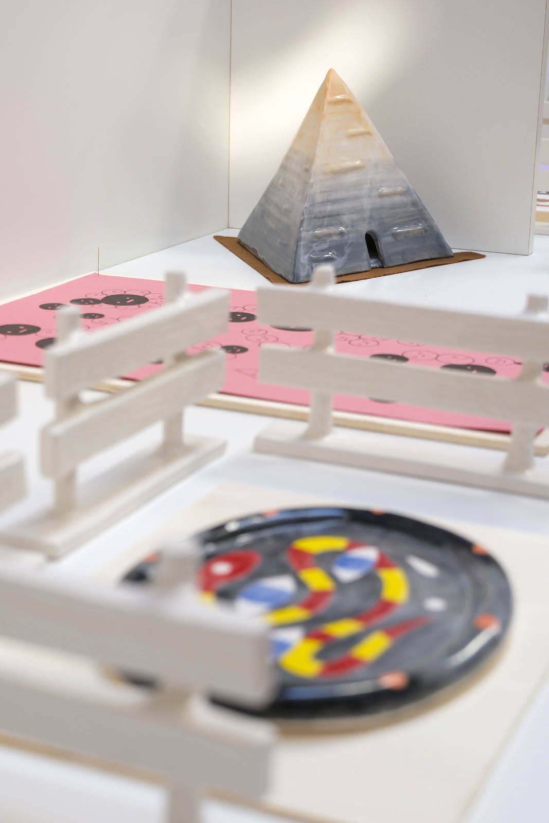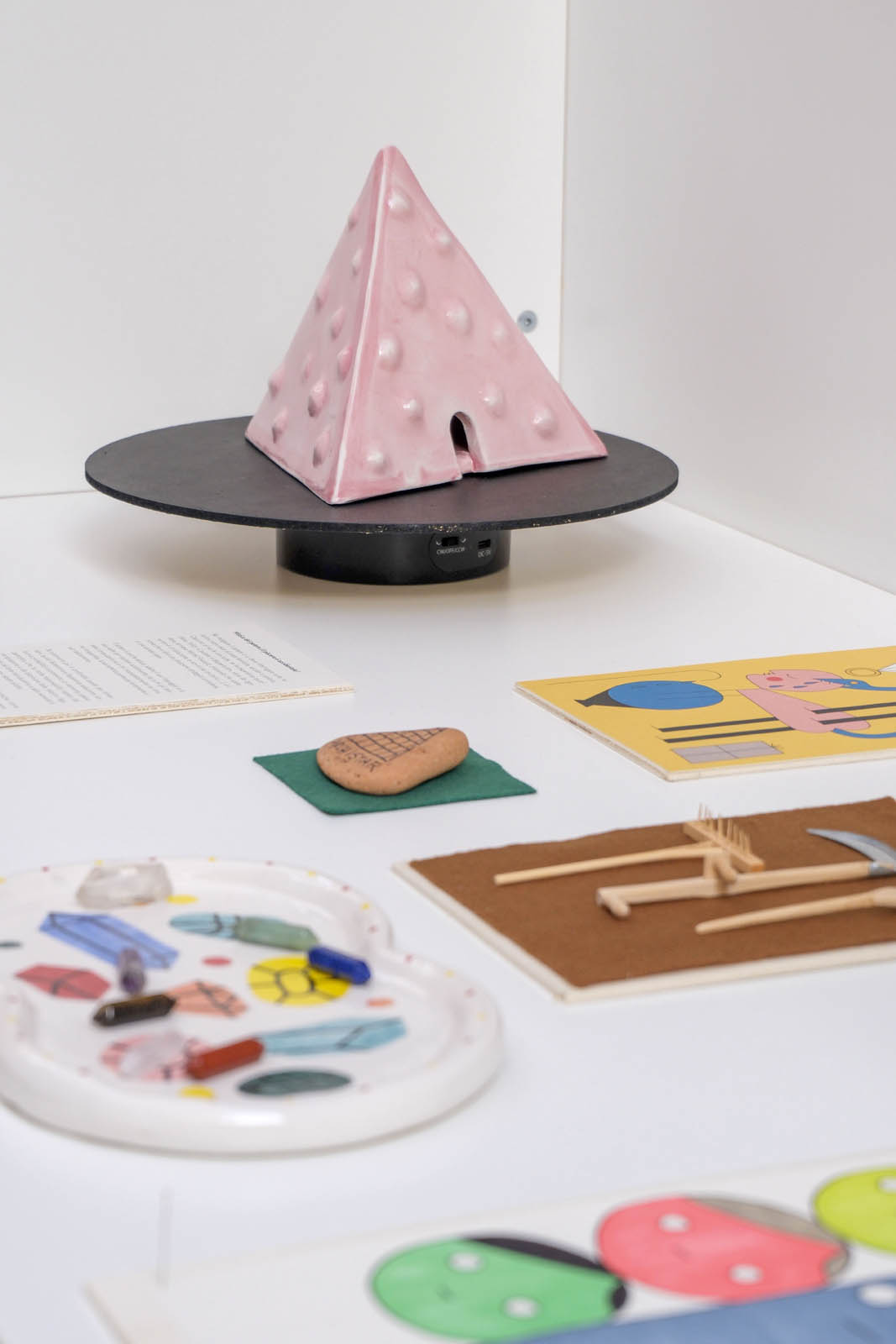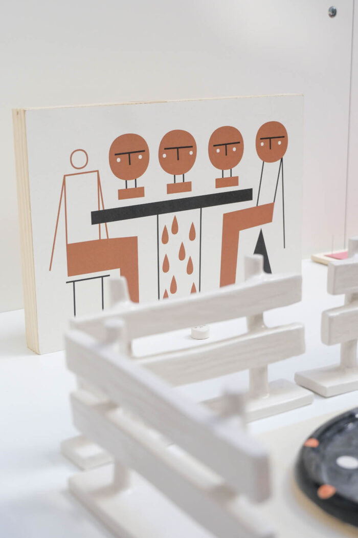 Per addentrarsi in questo reticolo di dinamiche, come in un laboratorio di analisi, prove e verifiche, l’illustratore Andrea Q mette a disposizione disegni, schizzi e pitture, ma anche oggetti esistenti o realizzati ad hoc con la ceramica, così da offrire la sua interpretazione Potere-Piacere da diverse angolazioni.