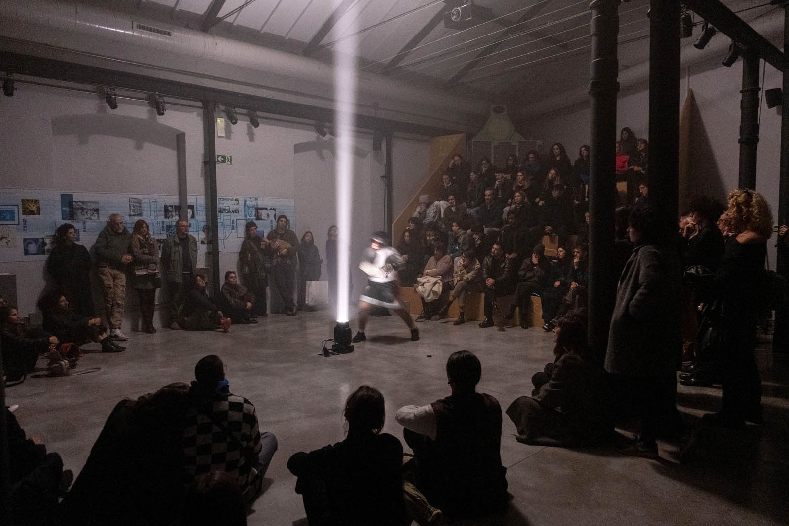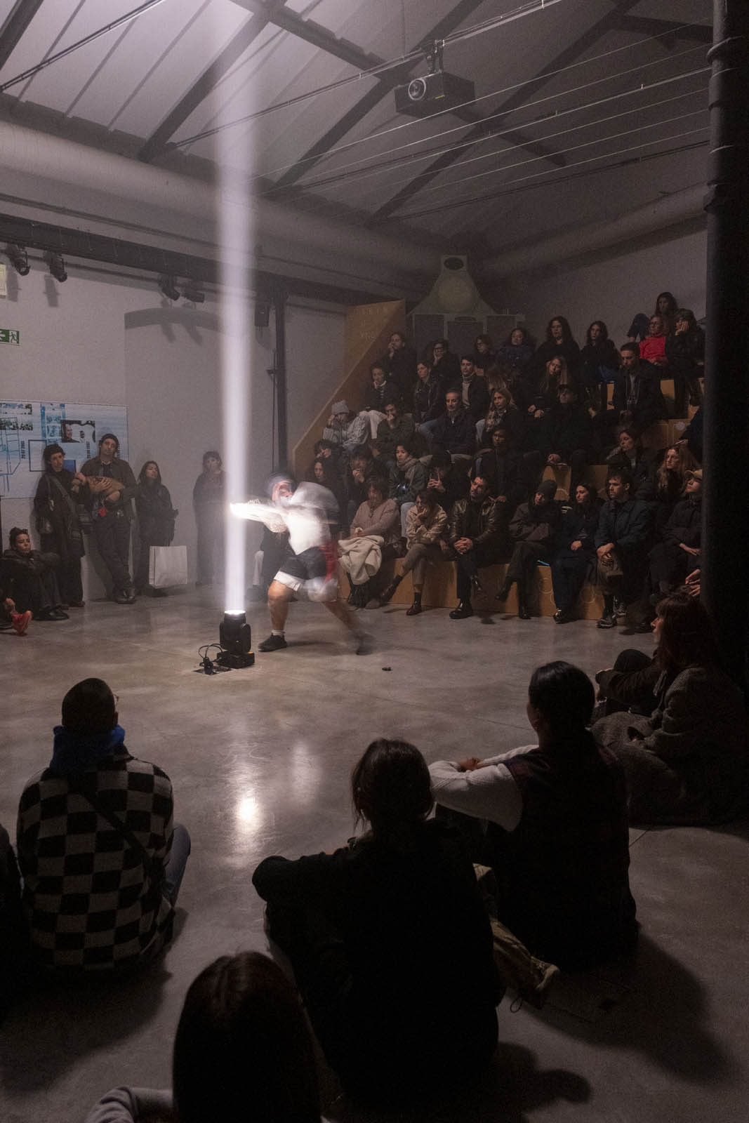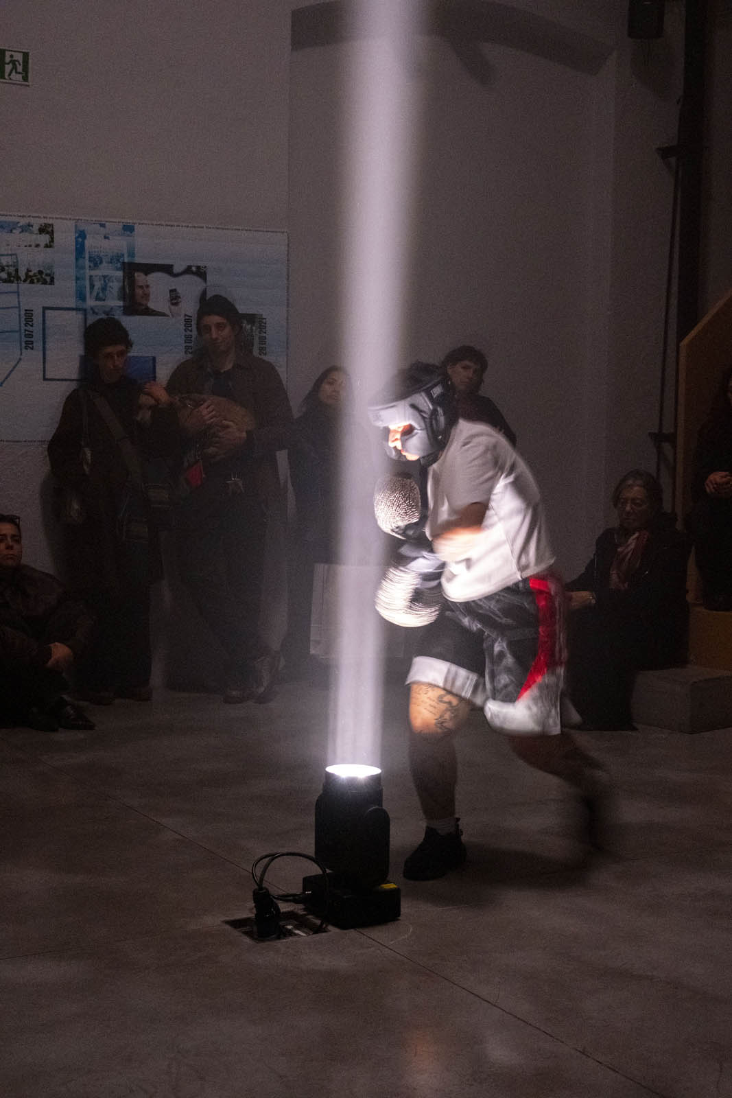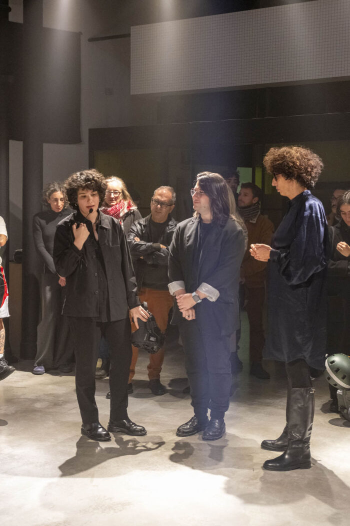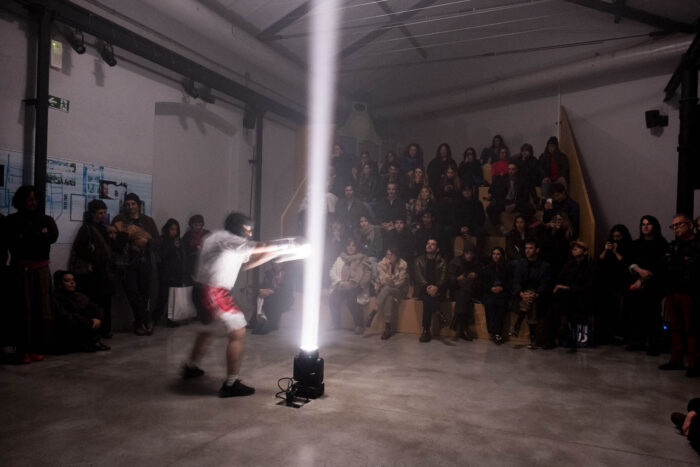Sunday best esplora la figura della Femme Fatale come elemento centrale del cinema noir, concentrandosi sul potere evocativo della voce e del gesto. L’opera mira a decostruire i codici del personaggio della boxeur, ricomponendo dialoghi e identità in modo inedito. L’interprete eseguirà semplici gesti di allenamento tipici della boxe, rivolgendosi verso un fascio di luce prodotto da un faro teatrale. Sui guantoni saranno applicati piccoli campanelli, che scandiranno il tempo con il suono prodotto a ogni colpo. Parallelamente, verranno recitate alcune battute tratte da Paura in palcoscenico di Alfred Hitchcock (1950), suggerite in auricolare dall’artista, nel tentativo di generare una sorta di macchina-cinema in cui dialogo e personaggio si disallineano. L’opera esplora il rapporto tra potere e piacere, concentrandosi sul ruolo della voce narrante come strumento capace di trasmettere significati che non sempre sfuggono alle logiche di controllo.