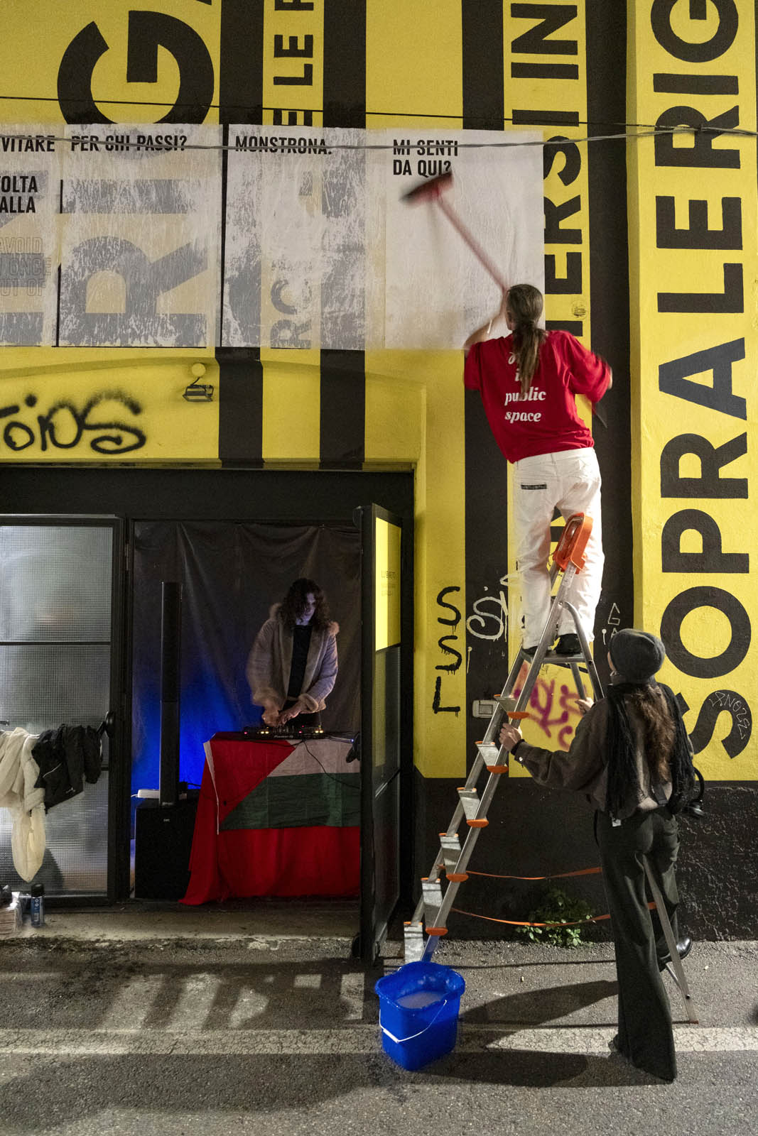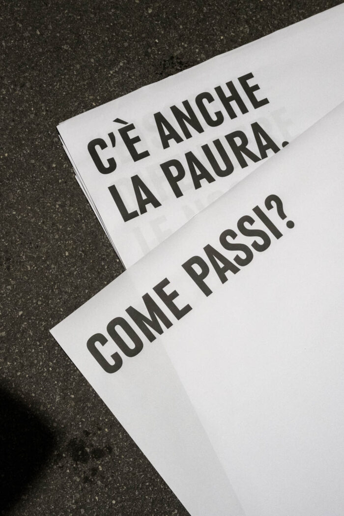 Alcuni contenuti sono tratti da conversazioni con persone transfemme, persone non binarie e donne cis, incontrate tra Essen e Madrid, a partire da domande sulla percezione del proprio corpo nello spazio pubblico. Altri sono tratti da un’inchiesta fatta con alcune persone migranti ospitate a Casa Don Gallo a Rimini, organizzazione nata in risposta all’emergenza abitativa. Altri ancora sono frutto delle nostre conversazioni.