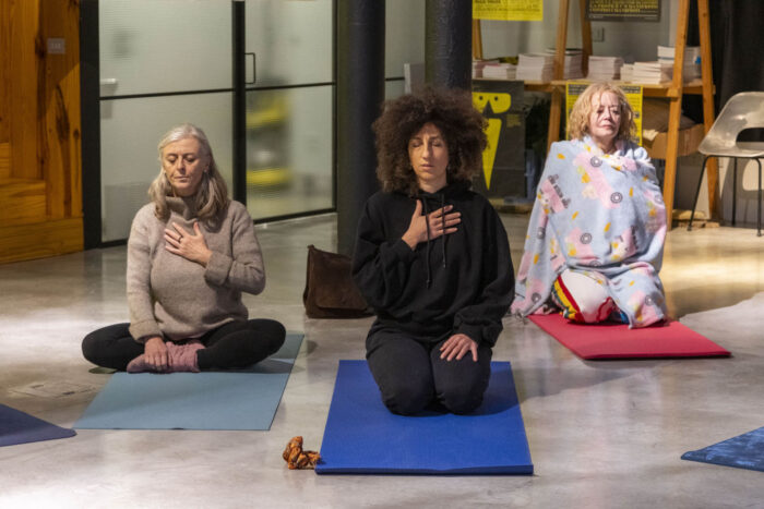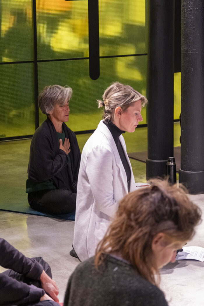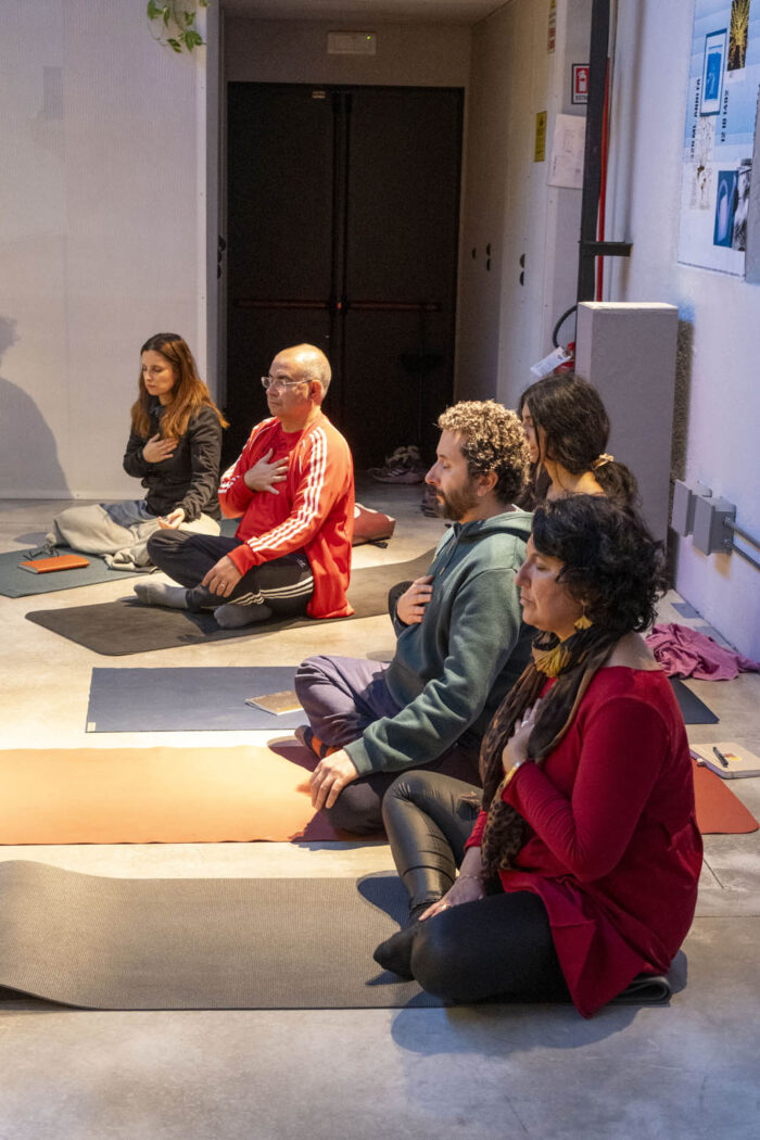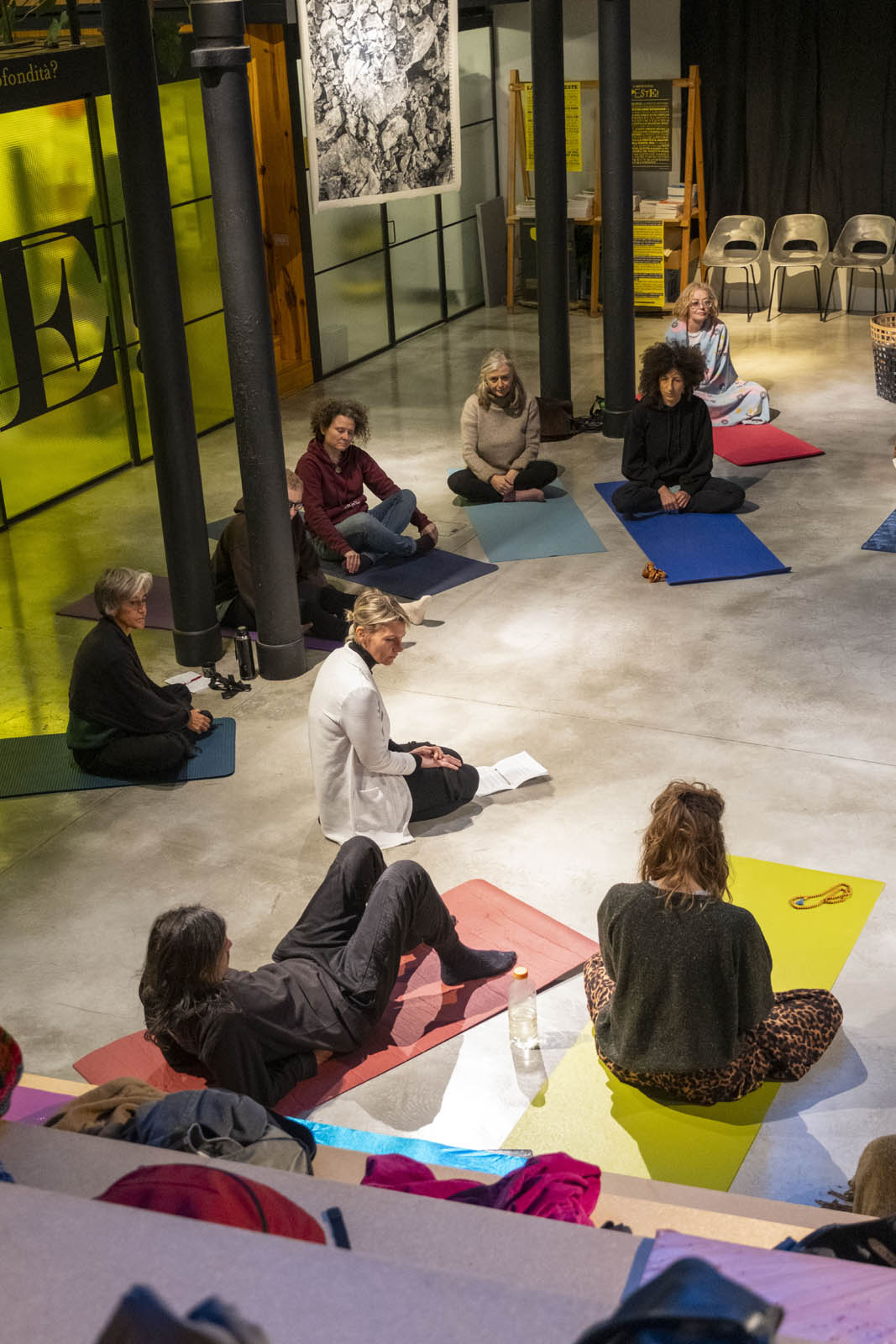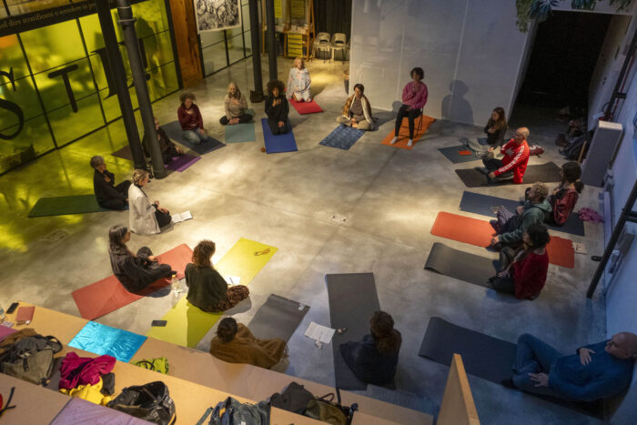Francesca Proia guida una pratica corporea progressivamente focalizzata sul respiro, sull’ascolto e sull’accesso ai mantra.