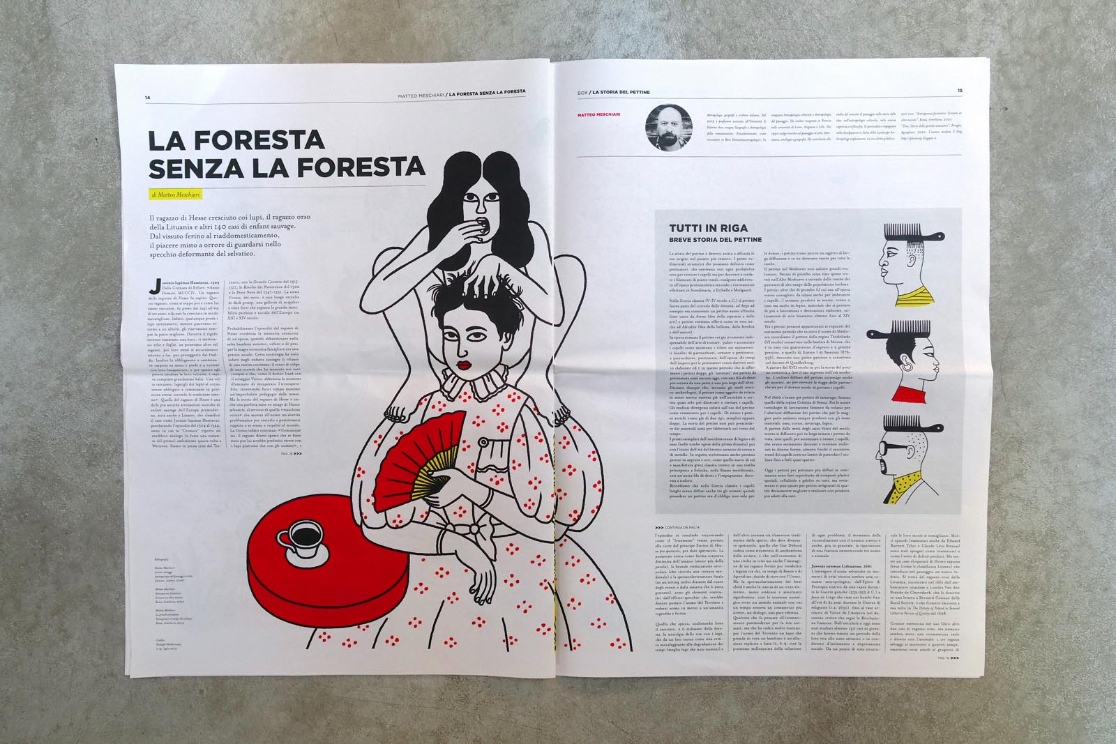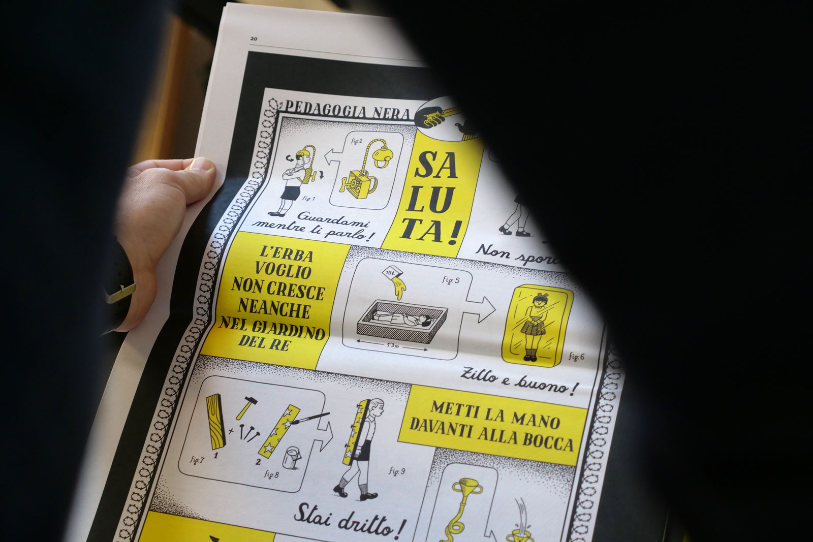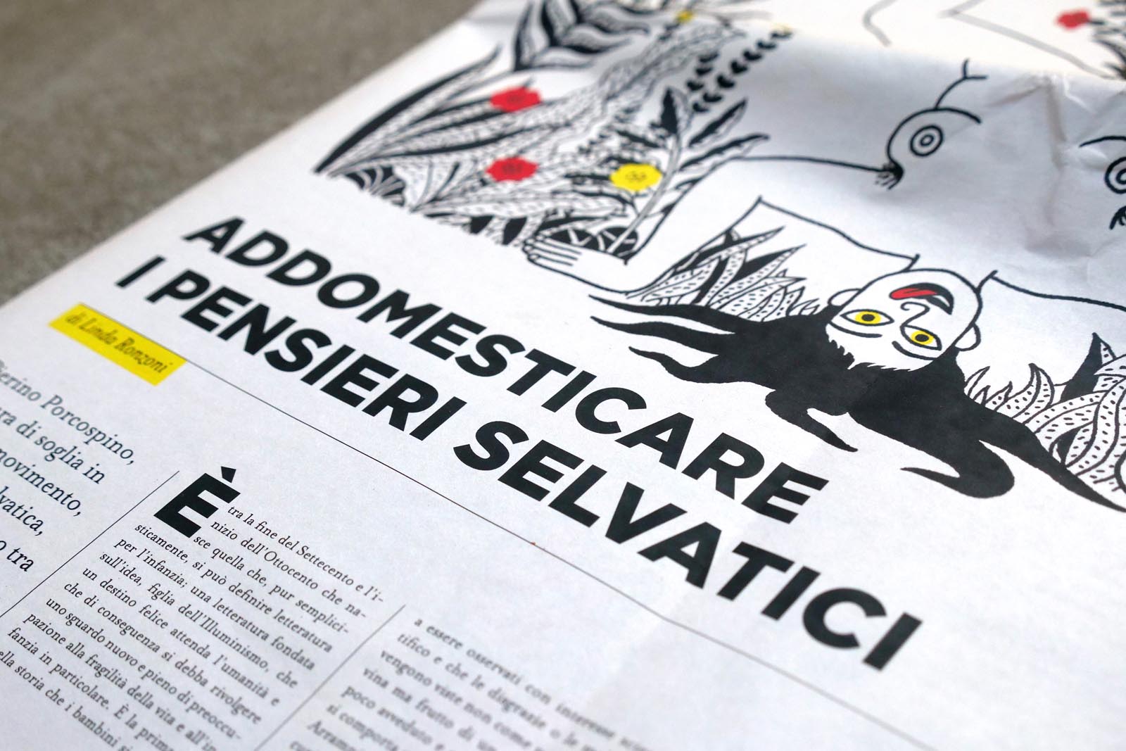 Magazine inedito firmato Il Lazzaretto, realizzato in collaborazione con l’illustratrice catalana Luci Gutiérrez e interamente dedicato al tema del Selvaggio, Il Sabato del Selvaggio prende le mosse da Der Struwwelpeter (in italiano Pierino Porcospino), libro culto per l’infanzia scritto dallo psichiatra tedesco Heinrich Hoffmann nel 1845. Seguendo il tema di riferimento, e mantenendo lo sguardo sulla dicotomia ordine/disordine, tutti gli articoli del Magazine hanno a che fare con l’essere selvaggio e con il suo contrario (ovvero la repressione o l’addomesticamento degli istinti): dal protagonista “fauve” e perturbante del celebre manuale di Hoffmann, il percorso si snoda attraverso alcune delle più importanti figure della pedagogia e della letteratura di genere, dal mito del “ritorno alla natura” nell’Emilio di Rousseau alla sessualità selvaggia e ribelle di Borroughs in The wild boys, alla bioenergetica di Alexander Lowen, fino ai più famosi bambini-selvatici della letteratura per ragazzi (Mowgli, il Max di Maurice Sendak in Nel Paese dei Mostri Selvaggi, ma anche Pippi Calzelunghe, Pinocchio, Mafalda), fino ad arrivare al punto di vista di artisti e autori contemporanei (Kiky Smith, Ryan McGinley e molti altri).