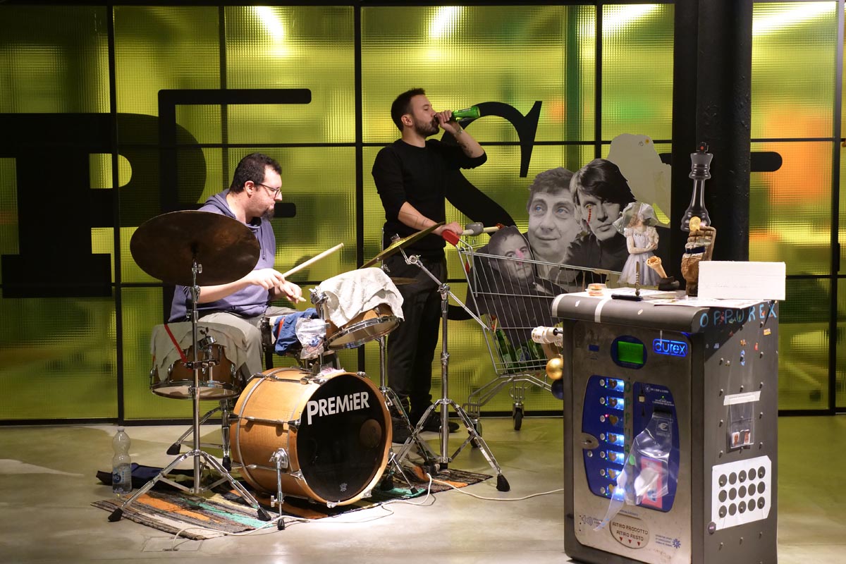 A seguire, la visionaria performance FLASH di Angelo Brezza (drums), Andrea Marinelli (live electronics, synth), Pablo Bermudez (talismani, nuvole, clouds) e Andrea Bennardo (object trouvé, racconti solidi): un folle ensemble di musicisti ed artisti per la prima volta ospite al Lazzaretto.
