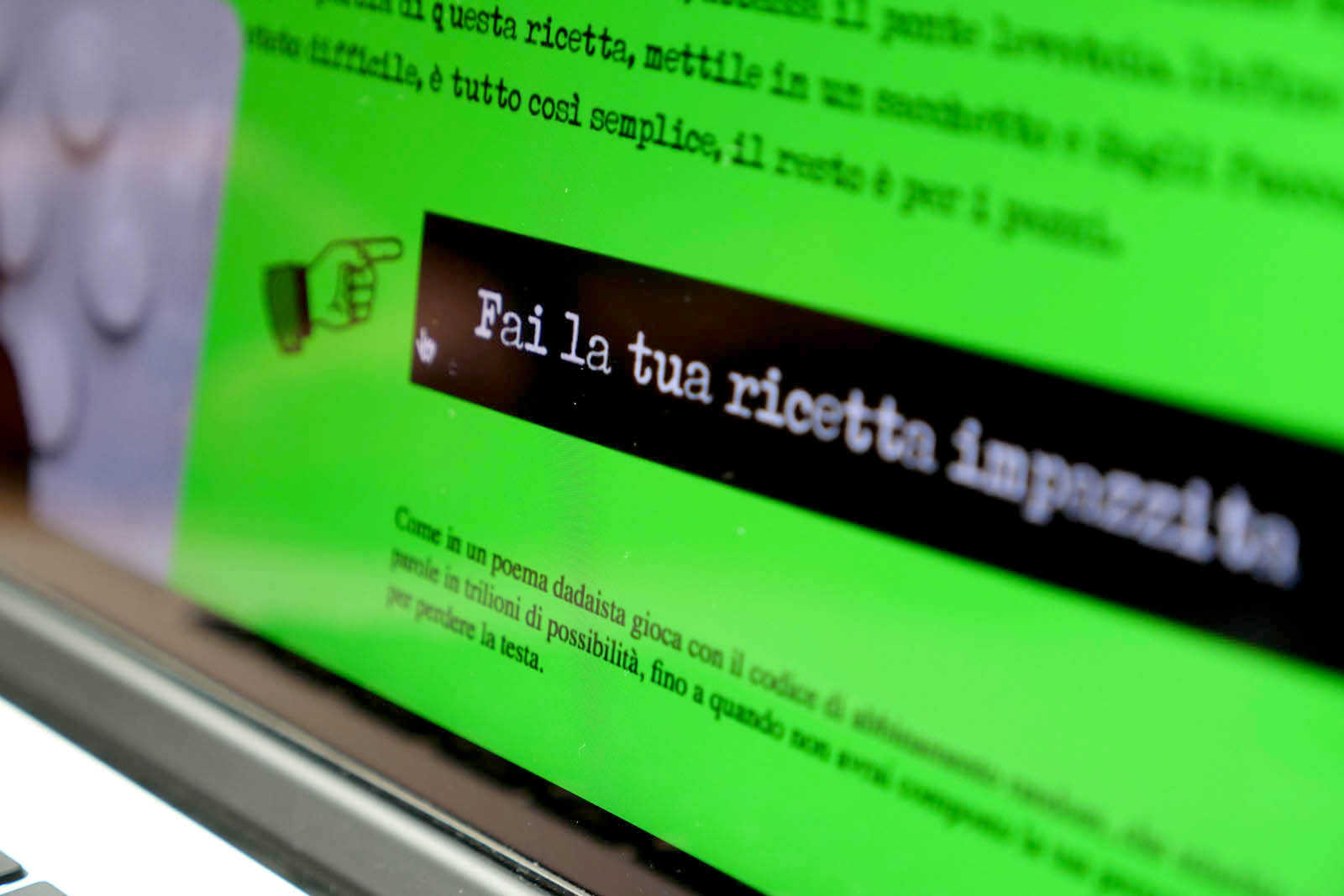 Le maionesi impazzite, 100 ricette per perdere la testa è il primo progetto realizzato per il Festival dal team creativo del Lazzaretto. Un progetto che parla di pazzia. E lo fa chiamando a parlare poeti, cantanti, artisti, psicologi, registi, scienziati, personaggi famosi e gente comune, gente morta e gente viva, chiedendogli di darci la loro personale ricetta per perdere la testa; per vedere cosa succede se dalle nostre vite sospendiamo il bianco e nero del controllo, la pianificazione, gli obiettivi da raggiungere, se lasciamo dialogare l’ordine col caos, se ci risvegliamo all’imprevisto con tutta la sua inquietudine e tutta la sua bellezza. Sul sito del festival ospiterà una stanza dove sarà possibile, scegliendo tra una serie di parole-ingredienti, cucinare la propria ricetta dada. «Per un anno ci siamo messi in dialogo con le nostre parti disordinate, oscure, insensate; qua e là durante l’anno abbiamo provato a smettere di essere ragionevoli come si converrebbe agli adulti, come si conviene in genere a chi è già nell’età della ragione, appunto. Per un anno abbiamo osservato cosa fanno gli innamorati. La verità del nostro profondo come dialoga con le regole della razionalità? La nostra identità è qualcosa di fermo, di rigido o invece si tratta piuttosto, se lo vogliamo vedere usando lo strumento della veridicità, di qualcosa di totalmente sfuggente, multiplo, abissale, danneggiato e folle? Ogni tentativo di comprensione emerge da un profondo, cavernoso caos, eppure è proprio da quel caos, se ci mettiamo dentro le mani, che emerge un’apertura, uno spalancarsi, una possibilità che sopravanza il reale. È un pensiero folle? È un pensiero stupendo?».