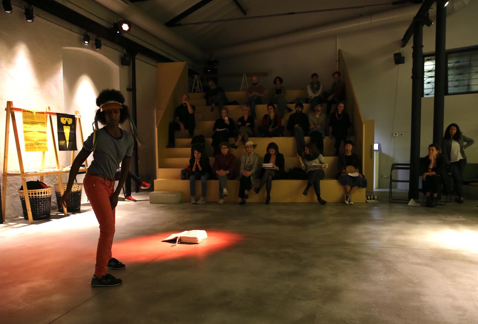 Il lavoro di Muna Mussie, tra gesto, visione e parola, indaga i linguaggi della scena e delle performing arts per dare forma alla tensione che scaturisce tra differenti poli espressivi. Tra le produzioni: Più che piccola, media (2007),* Con Permesso (2008), progetto site specific *Galata Perform Istanbul, Ti ho sognato, ma non eri il protagonista (2010). È autrice con Flavio Favelli della collezione di abiti FFMM (2007-2009). Tra i progetti internazionali: Monkey See, Monkey Do (Chapter I-II, 2011-2012); seguono l’installazione e performance *Milite Ignoto *(2015) e la performance Oasi (2018) che indagano le apparizioni fantasmatiche e la storia minore. Tra gli interventi oggettuali si segnala il progetto Punteggiatura (2018) basato sulla pratica del cucito, che vede la lingua come spazio politico-affettivo. Il suo lavoro è stato presentato ad Art Fall/PAC Ferrara, Raum e Live Arts Week Bologna, Fondazione Sandretto Re Rebaudengo Torino, Museo Marino Marini Firenze, Workspace Brussels, MAMbo Bologna, Màntica Cesena, Santarcangelo Festival, Viafarini Milano, Ipercorpo Festival, Museion Bolzano, Festival Pergine Spettacolo, Sale Docks Venezia, ERT Bologna. Premi: Riccione TTV-premio Pier Vittorio Tondelli/Nuovi Talenti 2008, segnalazione Premio Iceberg 2009, Premio Mondo 201