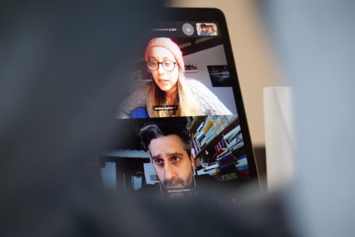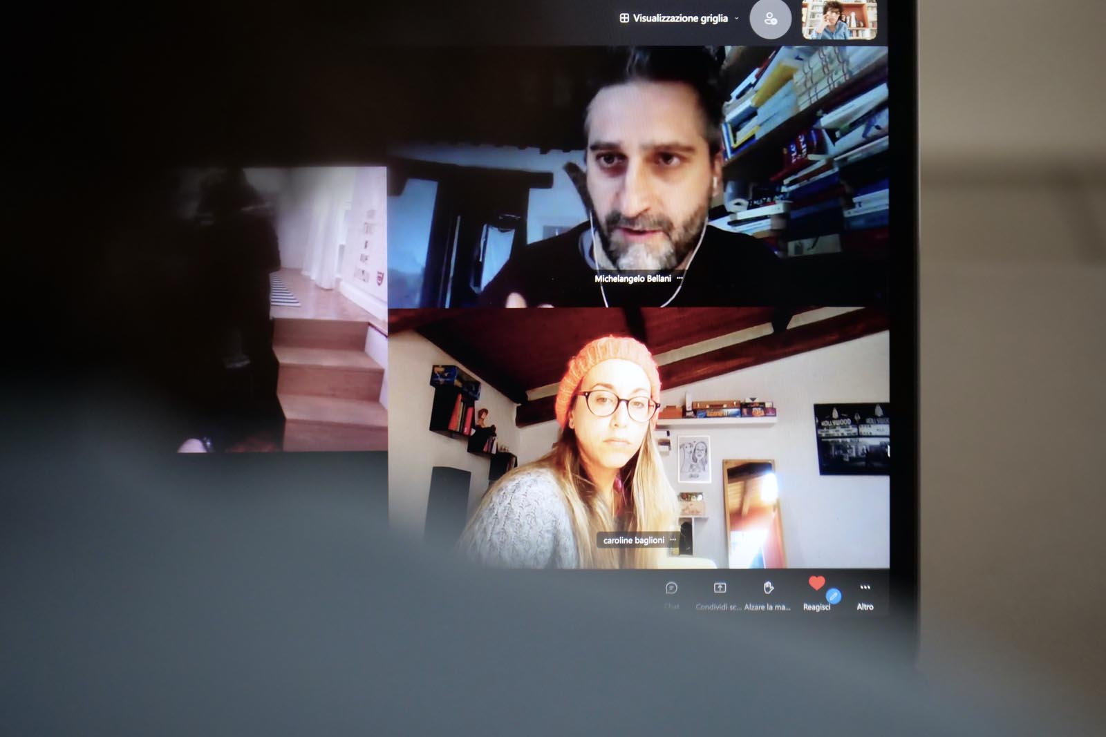 L’incontro fra Caroline Baglioni e Michelangelo Bellani avviene all’interno del gruppo di ricerca teatrale La società dello spettacolo di cui quest’ultimo dal 2007 è stato fondatore e co-direttore artistico. A seguito del monologo “Gianni” (Vincitore Premio Scenario per Ustica 2015, vincitore In-Box 2016, Premio Museo Cervi – Teatro per la Memoria 2017) hanno dato vita a un nuovo progetto artistico nel quale è rilevante la collaborazione con l’artista luciaio Gianni Staropoli. “Mio padre non è ancora nato”, secondo elemento di una trilogia dedicata ai legami di sangue, è stato presentato in prima assoluta al Festival dei 2mondi di Spoleto 2018 ed è stato vincitore del bando Visionari al Kilowatt Festival 2019. Il terzo elemento della trilogia “Sempre Verde” ha debuttato lo scorso Giugno ad Asti Teatro Festival. Caroline Baglioni ha vinto il bando come miglior autrice under 40 alla Biennale di Venezia 2019.