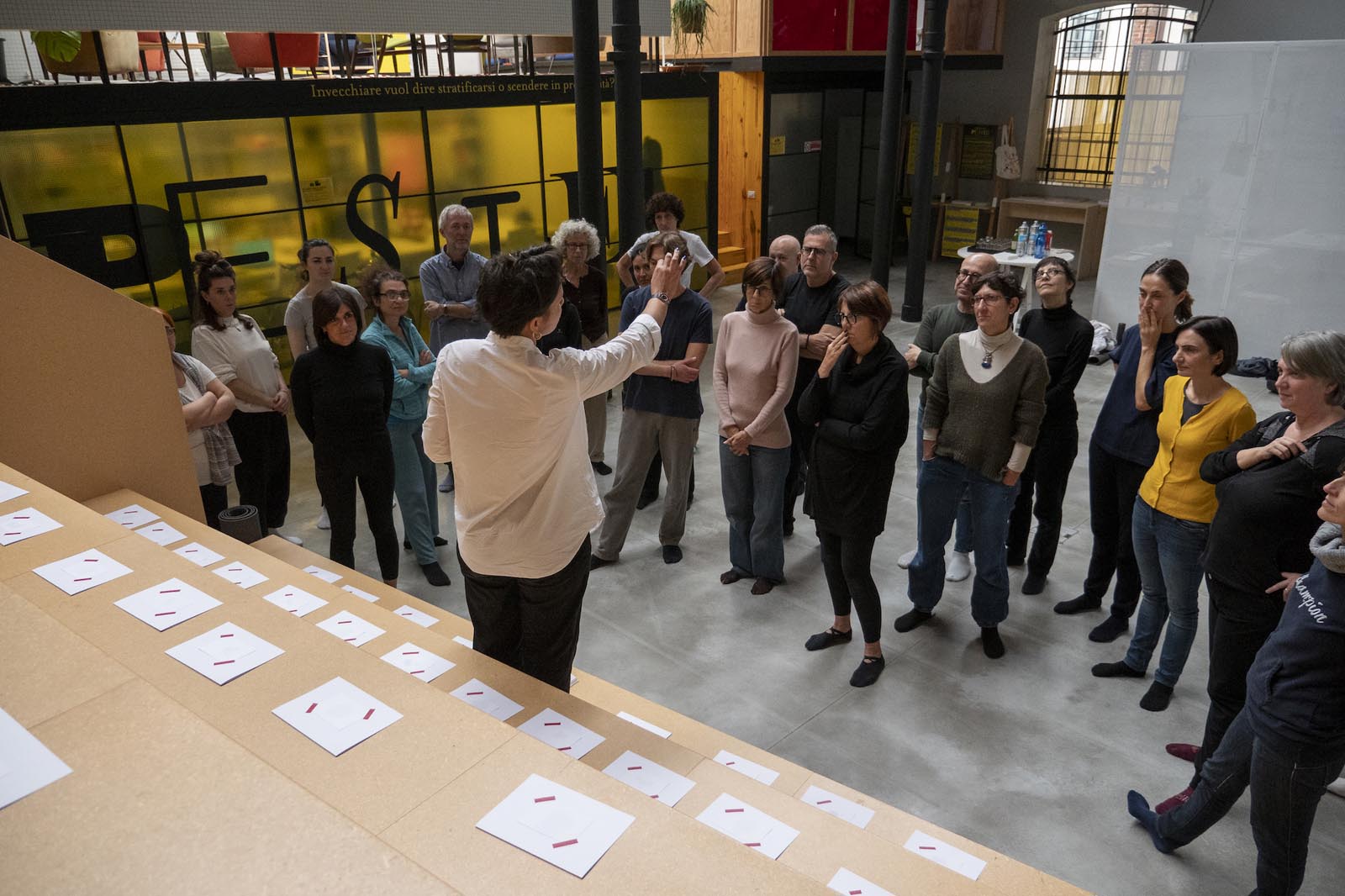 Il laboratorio si è focalizzato sull’esperienza della voce e della parola integrata al corpo.