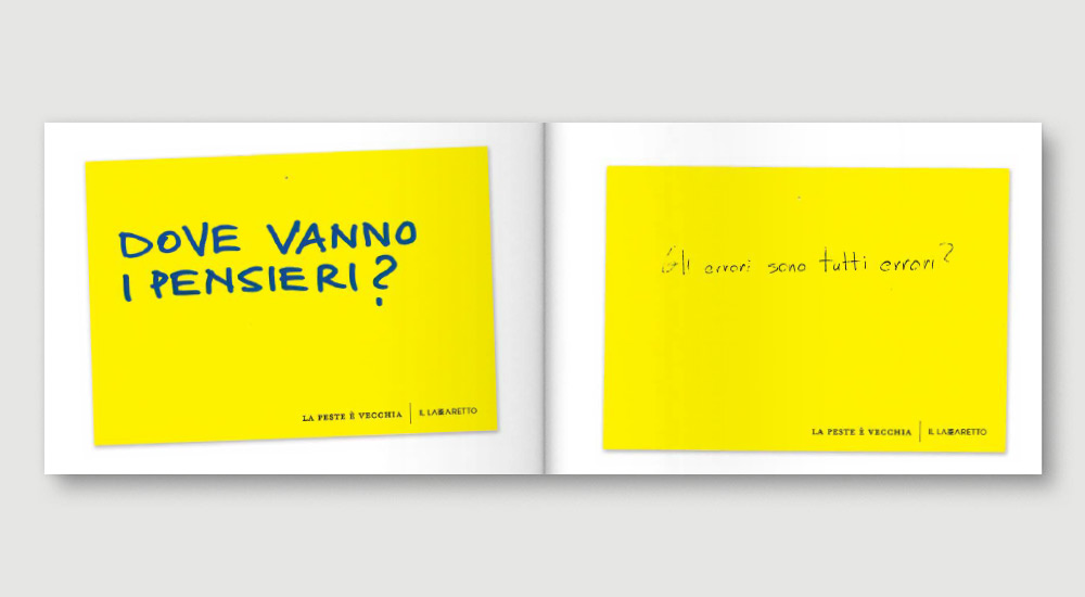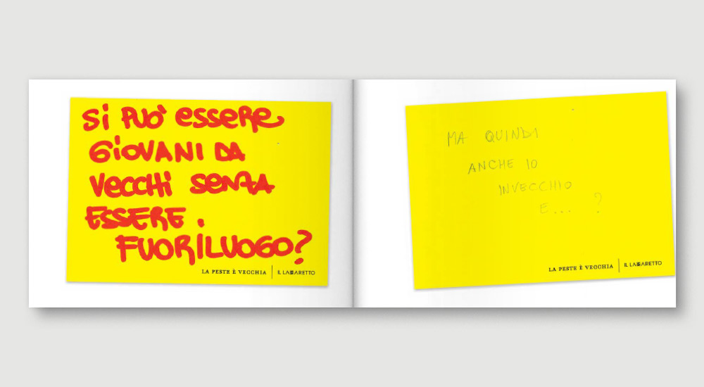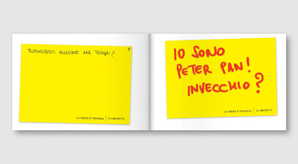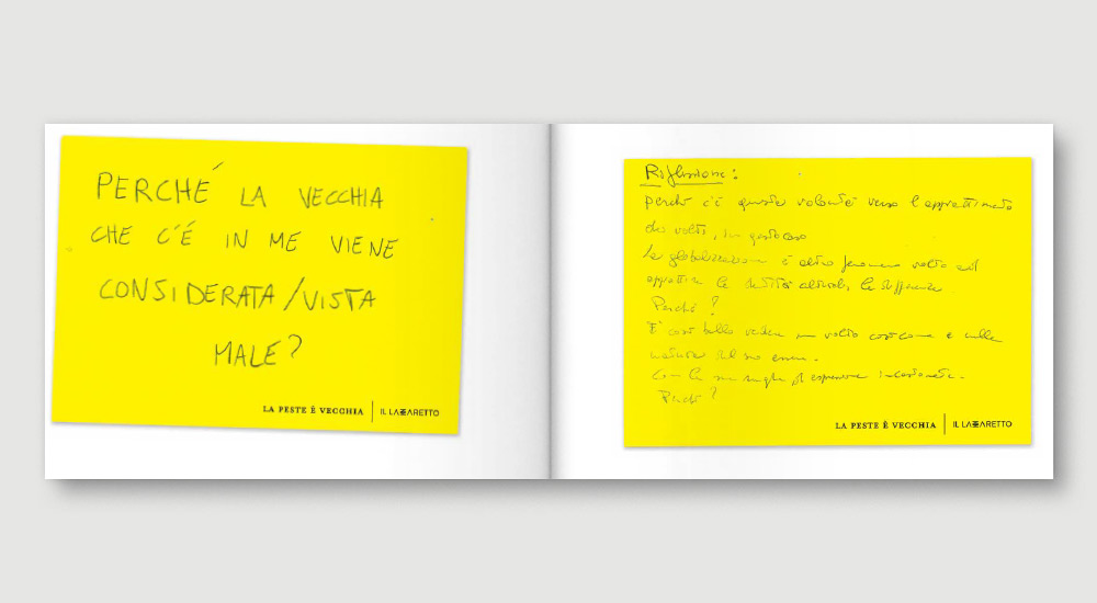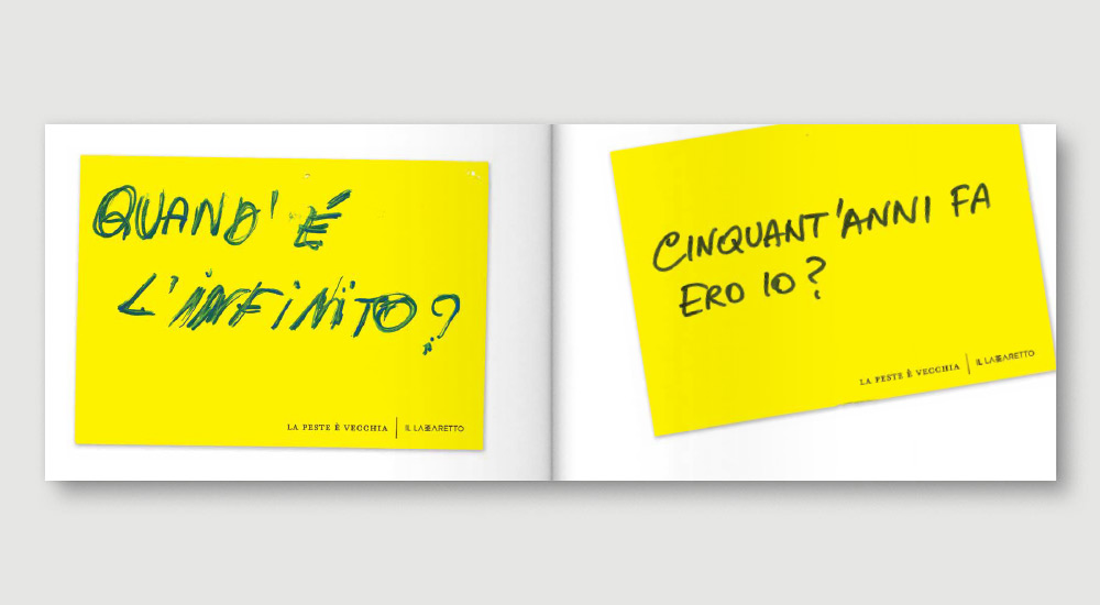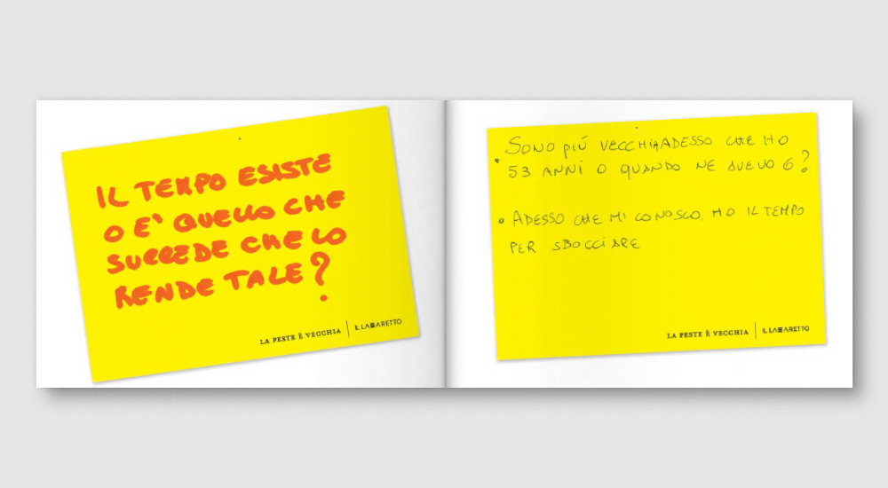 L’approccio che il Lazzaretto adotta è quello del ‘dubbio metodico’ e la conseguente arte del porre domande non convenzionali. Fare una domanda consente di mettere in discussione e di sfidare le abitudini mentali, ma anche di aprire nuove prospettive, produrre nuovi pensieri. Fare una domanda significa essere curiosi, aperti, capaci di giocare col caos e l’incertezza. Questo libro raccoglie 152 domande sulla vecchiaia e sul tempo, lasciate al Lazzaretto da artisti e pubblico nel corso dei mesi preparatori al Festival della Peste! 2020