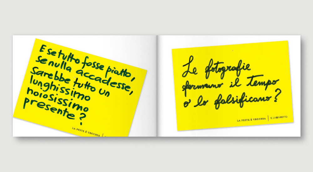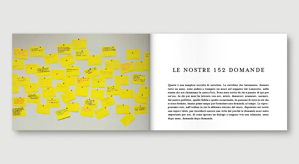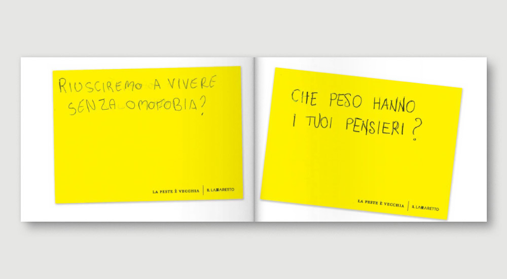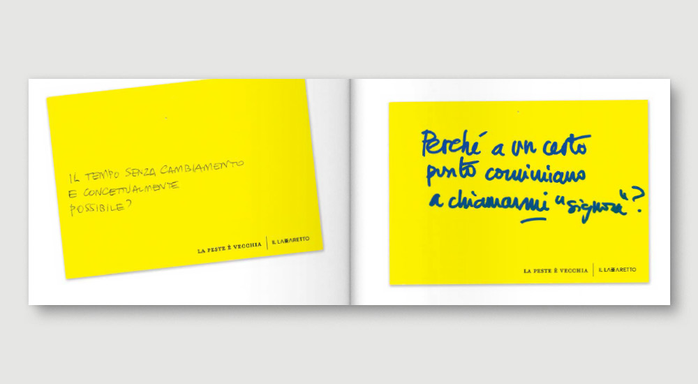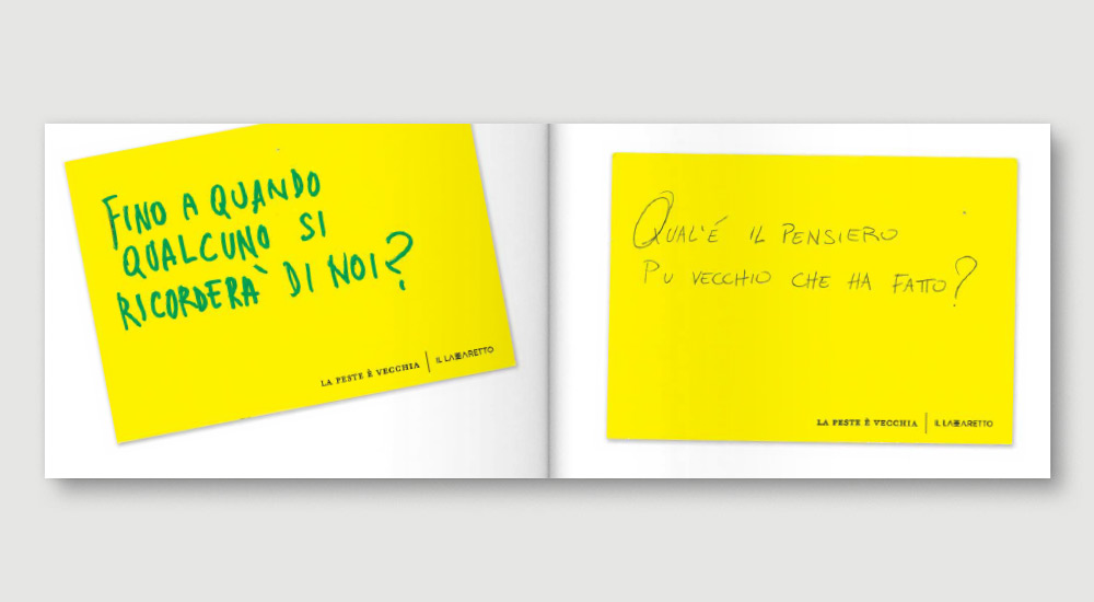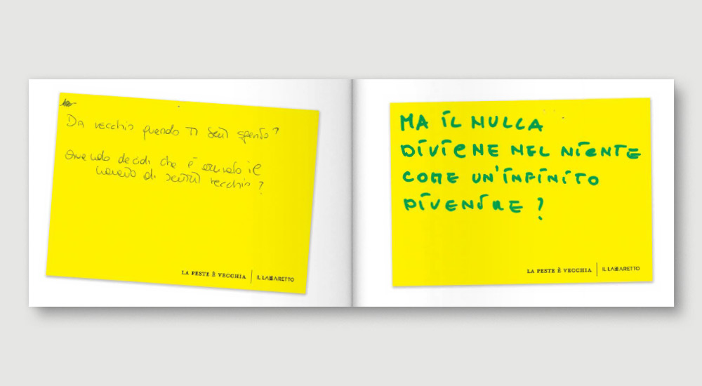 L’approccio che il Lazzaretto adotta è quello del ‘dubbio metodico’ e la conseguente arte del porre domande non convenzionali. Fare una domanda consente di mettere in discussione e di sfidare le abitudini mentali, ma anche di aprire nuove prospettive, produrre nuovi pensieri. Fare una domanda significa essere curiosi, aperti, capaci di giocare col caos e l’incertezza. Questo libro raccoglie 152 domande sulla vecchiaia e sul tempo, lasciate al Lazzaretto da artisti e pubblico nel corso dei mesi preparatori al Festival della Peste! 2020