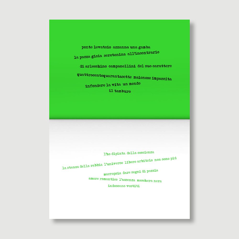 Oltre alla parte installativa, il progetto Maionesi impazzite prevedeva uno sviluppo nella dimensione digitale sul sito del Festival della Peste!: prendendo ispirazione dal manifesto del Dadaismo, l’utente poteva entrare in una pagina ad hoc del sito, comporre – grazie ad un programma realizzato ad hoc – la propria poesia dada ed inviarcela. Questo libro raccoglie le migliori poesie create dagli utenti.